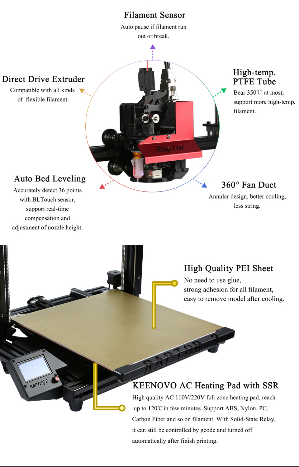 La funzione di livellamento automatico funziona alla grande, questo ti offre un esperienza di stampa 3D senza complicazioni. Sensori utilizzati in questo Le stampanti 3D sono autentica e tecnologia comprovata di BL Touch.